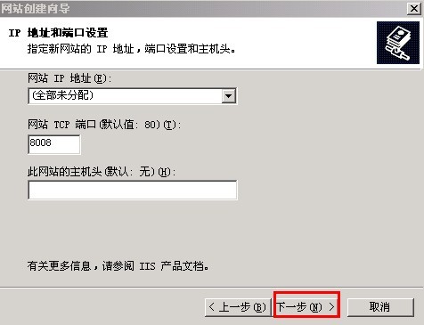 輸入端口8008 然后下一步,此處的端口可以隨意更改,如果有開啟防火墻記得添加防火墻。