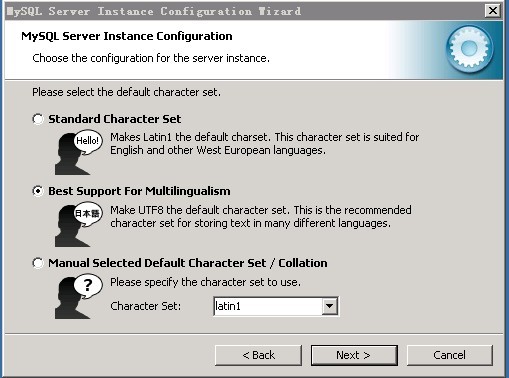 (mysql數(shù)據(jù)庫(kù)默認(rèn)端口,3306) 按照?qǐng)D示都勾上,然后next(此處是提示設(shè)置端口、添加端口到防火墻、啟用嚴(yán)格模式) ![]() 此處可以選擇默認(rèn)安裝,也可以選擇第二個(gè)選項(xiàng),或者選擇第三個(gè)選項(xiàng)之后選擇GB2312,這是設(shè)置數(shù)據(jù)庫(kù)的字符集和編碼,國(guó)內(nèi)通常是用GB2312 或utf8