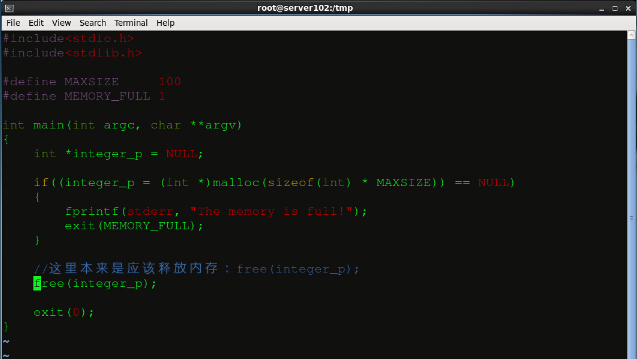 為了體現(xiàn)valgrind 的檢錯功能,我們故意編寫一個只malloc沒有free的C程序:
