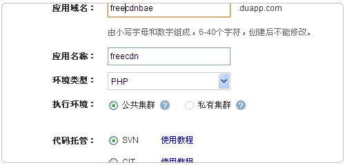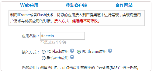 3、先在百度BAE空間上創建一個應用。