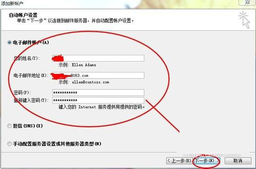 5、在“接收郵件(pop、IMAP或HTTP)服務(wù)器:”字段中輸入 pop.163.com。在“發(fā)送郵件服務(wù)器 (SMTP):”字段中輸入:smtp.163.com,單擊“下一步”。