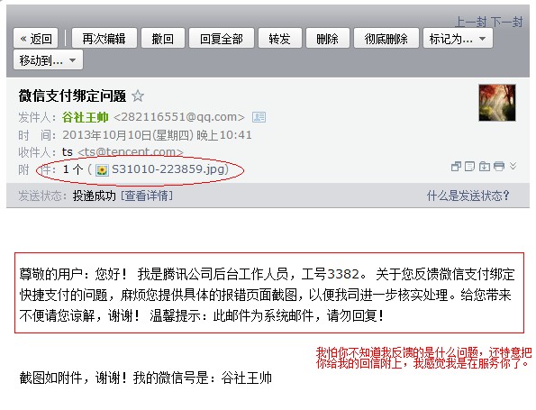 我怕你不知道我反饋的是什么問題,我還特意把你給我的回信附上,我感覺我是在服務你了!