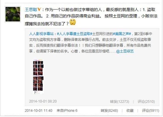 2、“國民老公”王思聰也做過字幕組成員