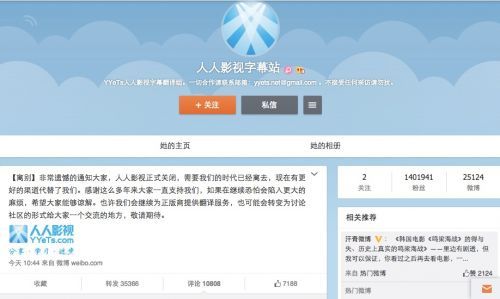 2014年12月20日上午,人人影視官方微博發布了一條消息稱,人人影視正式關閉,未來或繼續為正版商提供翻譯服務,也可能會轉變為討論社區。人人影視陪伴了我們多年,關于人人影視,你應該知道這8件事