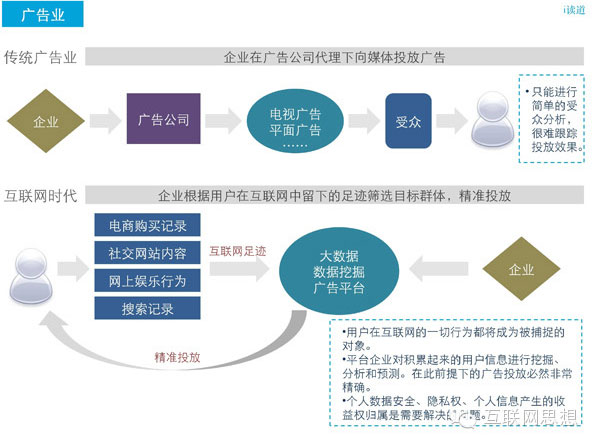 2、未來(lái)廣告業(yè)將依托互聯(lián)網(wǎng)大數(shù)據(jù)進(jìn)行再建立。在未來(lái),在你酒后駕車(chē)被罰后,也許你老婆的手機(jī)里面會(huì)出現(xiàn)是否需要為你購(gòu)買(mǎi)保險(xiǎn)的短信廣告。