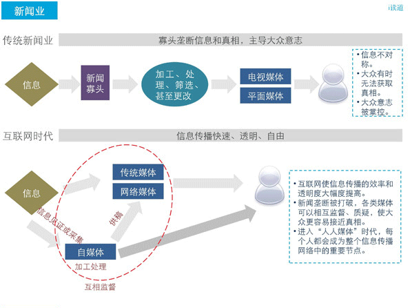1、傳統(tǒng)新聞媒體的話(huà)語(yǔ)權(quán)衰弱,話(huà)語(yǔ)權(quán)將被分散到各個(gè)自媒體的山頭。新聞業(yè)會(huì)反過(guò)來(lái)向自媒體約稿。