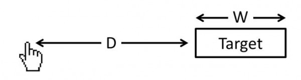 定律內容:從一個起始位置移動到一個最終目標所需的時間由兩個參數(shù)來決定,到目標的距離和目標的大小(上圖中的 D與 W),用數(shù)學公式表達為時間 T = a + b log2(D/W+1)。
