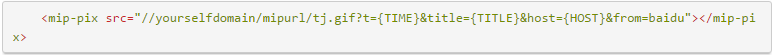 MIP會自動匹配參數,生成請求地址,例如://yourselfdomain/mipurl/tj.gif?t=1459415529464&title=MIP_PIX_DEMO&host=mip.bdstatic.com&from=baidu