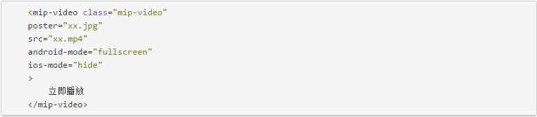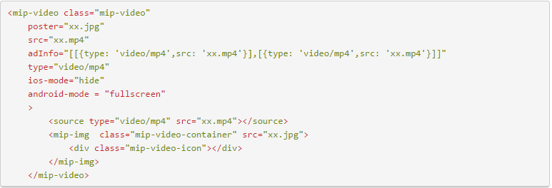mip-video能夠像html5的video標簽一樣播發視頻,可以是圖文形式的,也可以是純文字結構,不同的形式使用的代碼是不同的。