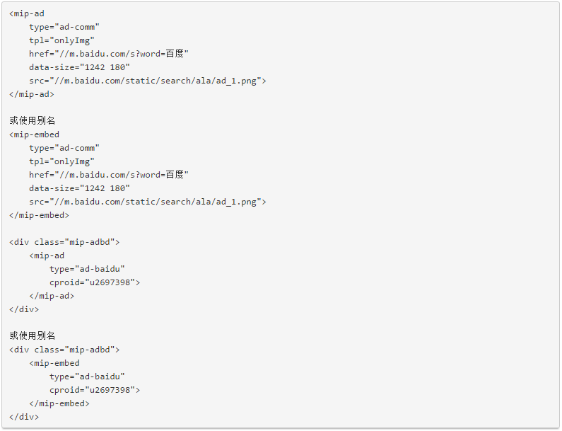 百度mip廣告組件mip-ad