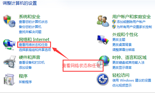 2、進入控制面板設置頁面,找到網絡狀態和任務,點擊進入設置頁面。
