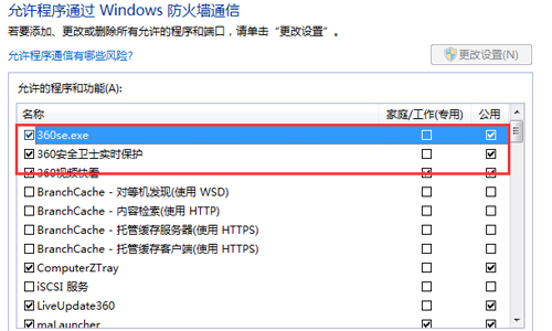 6、我們還可以對防火墻進一步設置,在左側導航欄選擇允許程序或功能通過Windows防火墻,我們可以查看那些程序和功能允許通過防火墻,若我們不想某個程序或功能通過防火墻,我們將前面的√去掉即可。 如圖1、圖2所示: