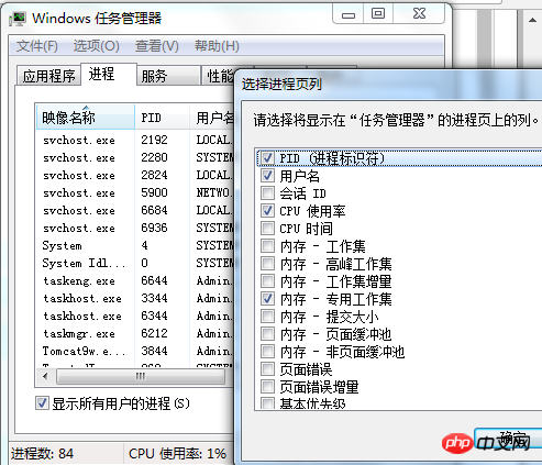 3.打開Windows任務(wù)管理器,點(diǎn)擊查看,點(diǎn)擊選擇列,勾起PID選項(xiàng),如下圖所示: