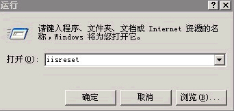 (1)如下圖所示在開始-〉運行中輸入iisreset可以實現IIS重啟。