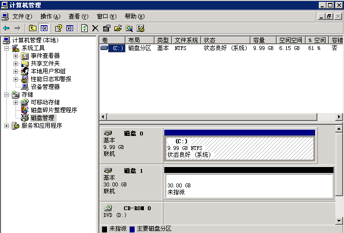 磁盤加載:新開的云主機默認只有一個C盤,其它的磁盤空間需要您自己手動加載,詳細步驟以下: