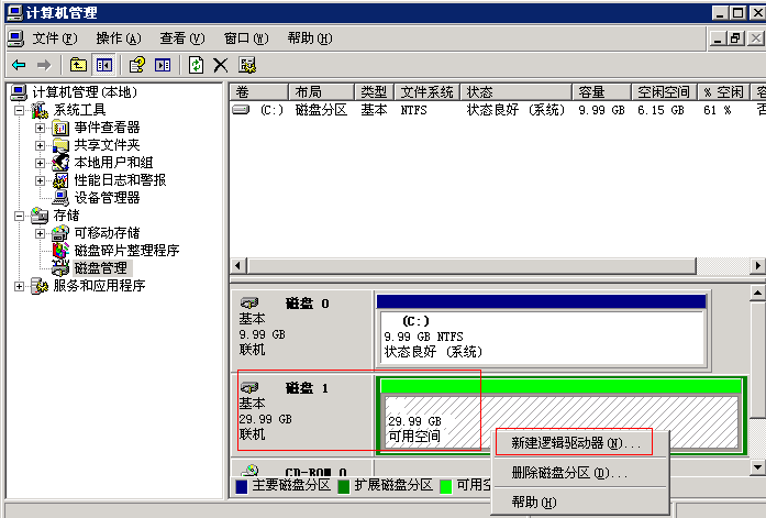 5.再次右鍵點擊磁盤,選擇新建邏輯驅動器.出現下圖: