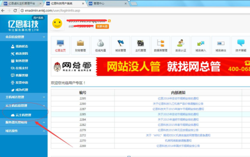 1、通過會員賬號登錄主機(jī)管理后臺,找到云主機(jī)管理選項(xiàng)。